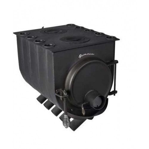 Печь способна отопить помещение до 140 м3. На верхней части печи расположена широкая варочная панель с двумя конфорками
